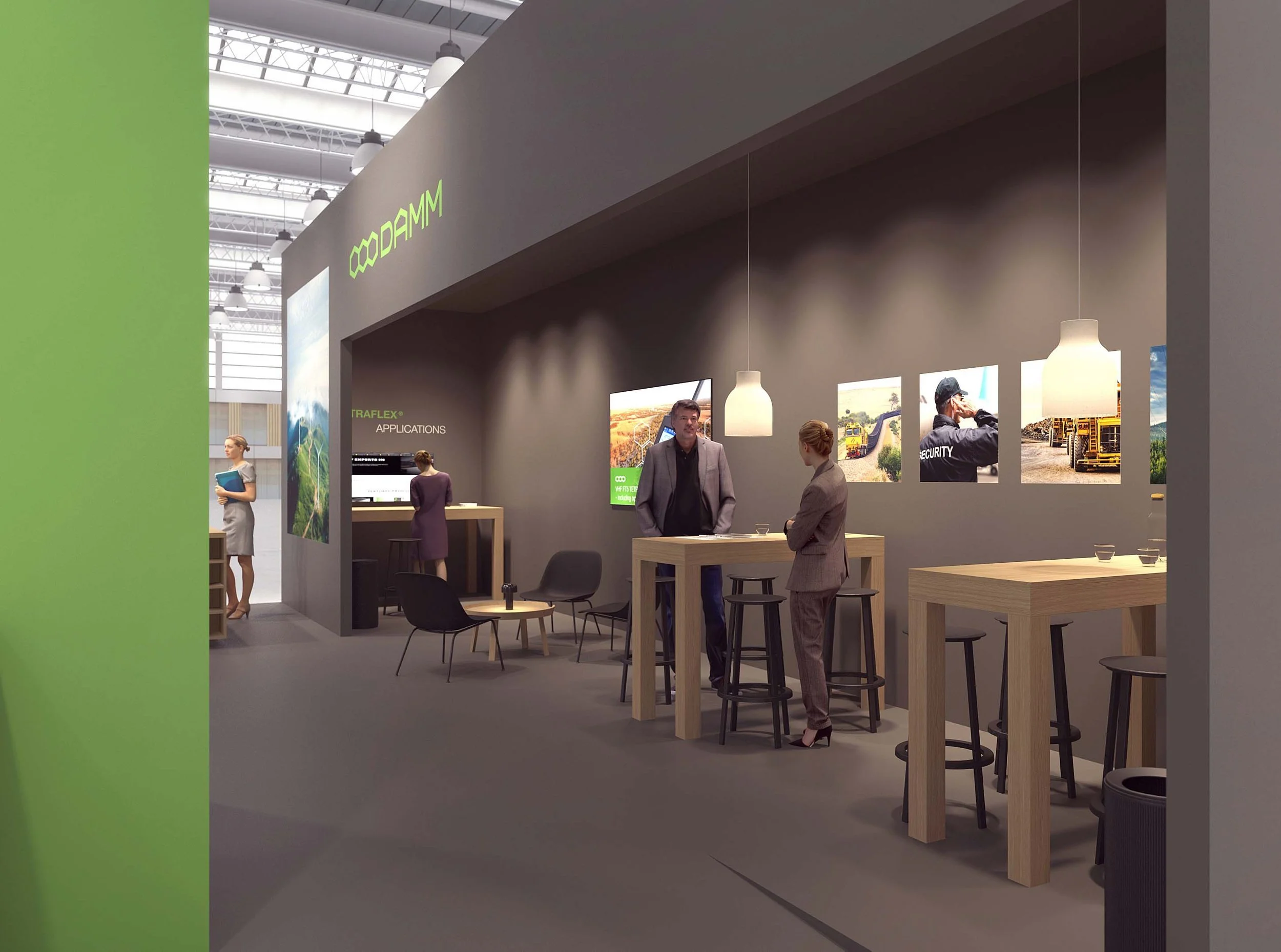 DAMM specialiserer sig i at udvikle kommunikationssystemer, der er velegnede til barske og krævende miljøer, og jeg ønskede, at standen skulle formidle denne særlige egenskab, afspejle DAMMs brand og tiltrække opmærksomhed på messen.